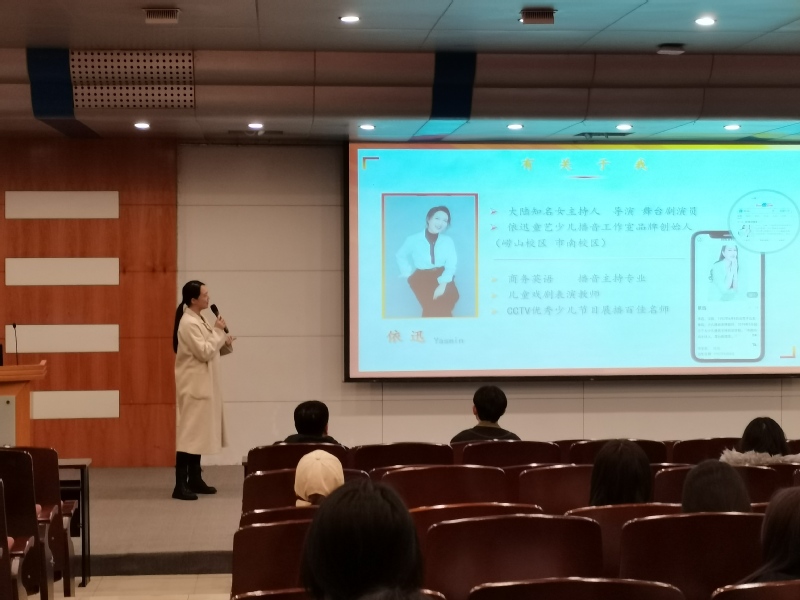 3月11日晚,太阳成集团122ccvip老员工职业生涯规划品牌活动“商海起航”之“学长说”讲座在学术楼203举办,本期活动邀请2010级商务英语专业优秀毕业生车依迅开讲,太阳成集团122ccvip党总支书记郭学道、人才招聘实习实训办公室主任孙秀宝及200名员工现场听讲,并通过网络视频进行同步直播。