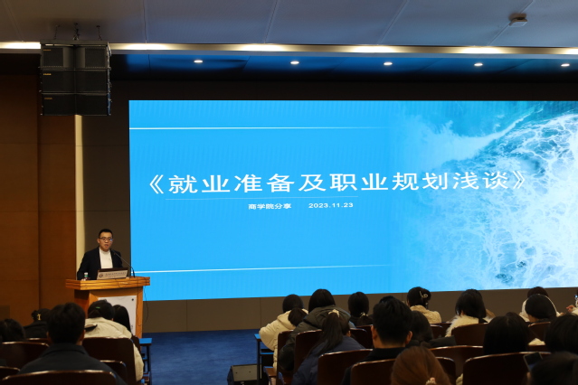 王俊宇从就业准备及职业规划谈起,在如何选择工作、实习与就业准备、求职技巧、求职心理等多个方面对同学们进行现场讲解,同学们都非常认真地聆听,受益匪浅,对学业和职业发展有了全新的认识,明晰了自己的目标和未来发展方向。